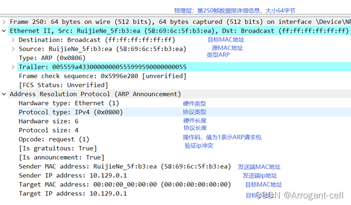 ARP (Address Resolution Protocol)协议,即地址解析协议。该协议的功能就是将IP地址解析成MAC地址。