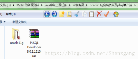 1、解压上述压缩包后---》打开文件夹后看见如下图,一个是oracle安装资料,一个是oracle客户端安装资料plsql。