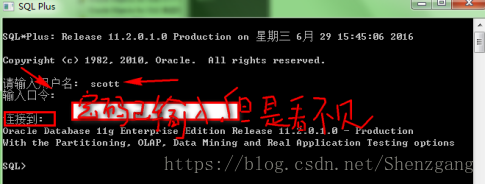 打开SQL Plus后,输入用户名和密码,enter键,提示如下信息则安装成功。