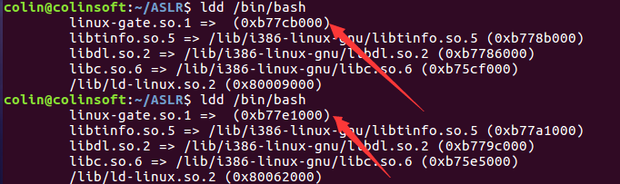 ALSR开启状态下执行命令:(开启状态下两此加载地址不同)