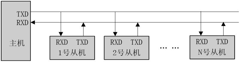 单片机构成的多机系统常采用总线型主从式结构。所谓主从式,即在数个单片机中,有一个是主机,其余的是从机,从机要服从主机的调度、支配。80C51单片机的串行口方式2和方式3适于这种主从式的通信结构。当然采用不同的通信标准时,还需进行相应的电平转换,有时还要对信号进行光电隔离。在实际的多机应用系统中,常采用RS-485串行标准总线进行数据传输。