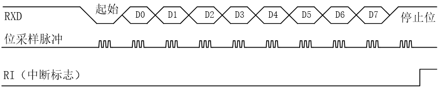 用软件置REN为1时,接收器以所选择波特率的16倍速率采样RXD引脚电平,检测到RXD引脚输入电平发生负跳变时,则说明起始位有效,将其移入输入移位寄存器,并开始接收这一帧信息的其余位。接收过程中,数据从输入移位寄存器右边移入,起始位移至输入移位寄存器最左边时,控制电路进行最后一次移位。当RI=0,且SM2=0(或接收到的停止位为1)时,将接收到的9位数据的前8位数据装入接收SBUF,第9位(停止位)进入RB8,并置RI=1,向CPU请求中断。