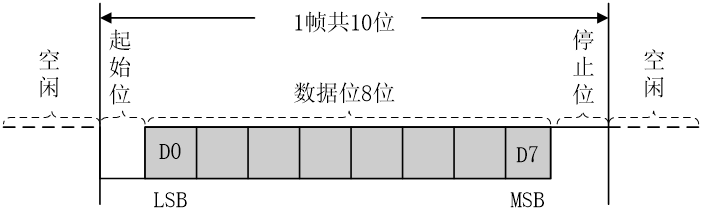 异步通信是指通信的发送与接收设备使用各自的时钟控制数据的发送和接收过程。为使双方的收发协调,要求发送和接收设备的时钟尽可能一致。