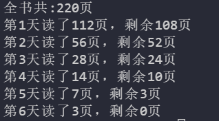 for i in range(1, 7):print("第{}天读了{}页,剩余{}页". format(i, sum-num(i+1), num(i+1)))sum = num(i+1)