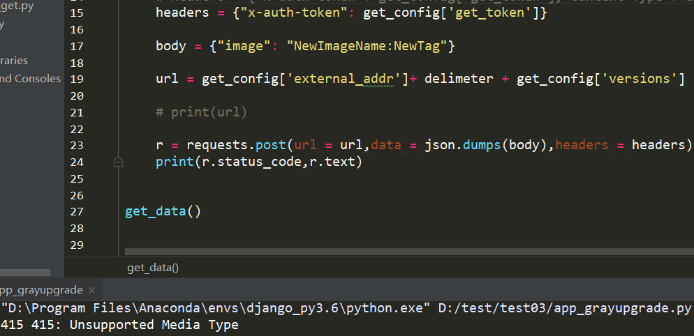 在用POST方式携带token访问一个API接口时,发现返回状态码为415,错误信息为“Unsupported Media Type”