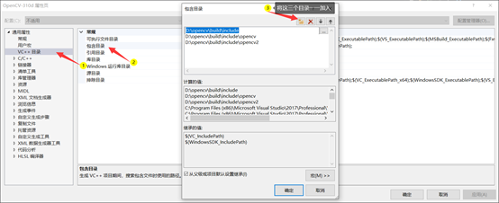 (如果你的 opencv版本较新,include 下只含有一个文件夹,那么添加第一、三个文件路径足以)