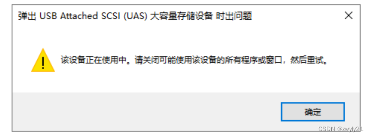 1.在移动硬盘使用结束后手动弹出时,显示设备正在使用中,且用火绒U盘解除占用时,显示有system系统程序占用,导致无法解除占用弹出U盘,在使用百度搜索的其他解决方法无效时,本博文给出一种新的解决方法。
