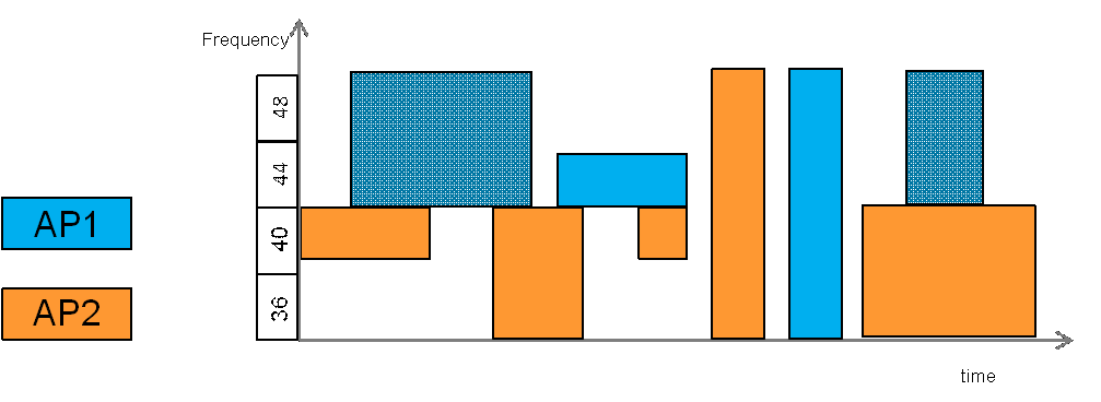 动态带宽管理几乎是为了频谱复用而设计的,通过动态信道管理可以增加信道的利用率,减少信道之间的干扰。在这种机制下可以让两个AP同时工作在一个相同的带宽信道上。