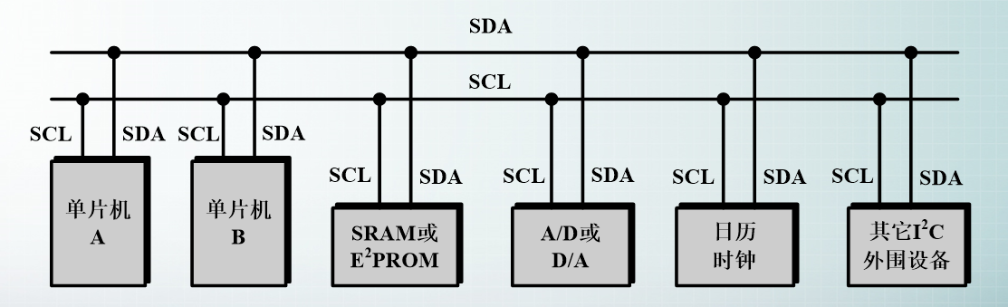 I2C 使用 SDA 信号线来传输数据,使用 SCL 信号线进行数据同步。