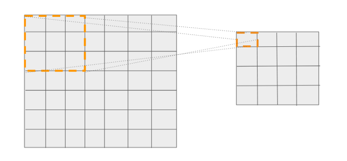 这个3x3的滤波器可以在7x7的网格上移动16个不一样的位置,并做出预测(如前所述),这是非常明显的。