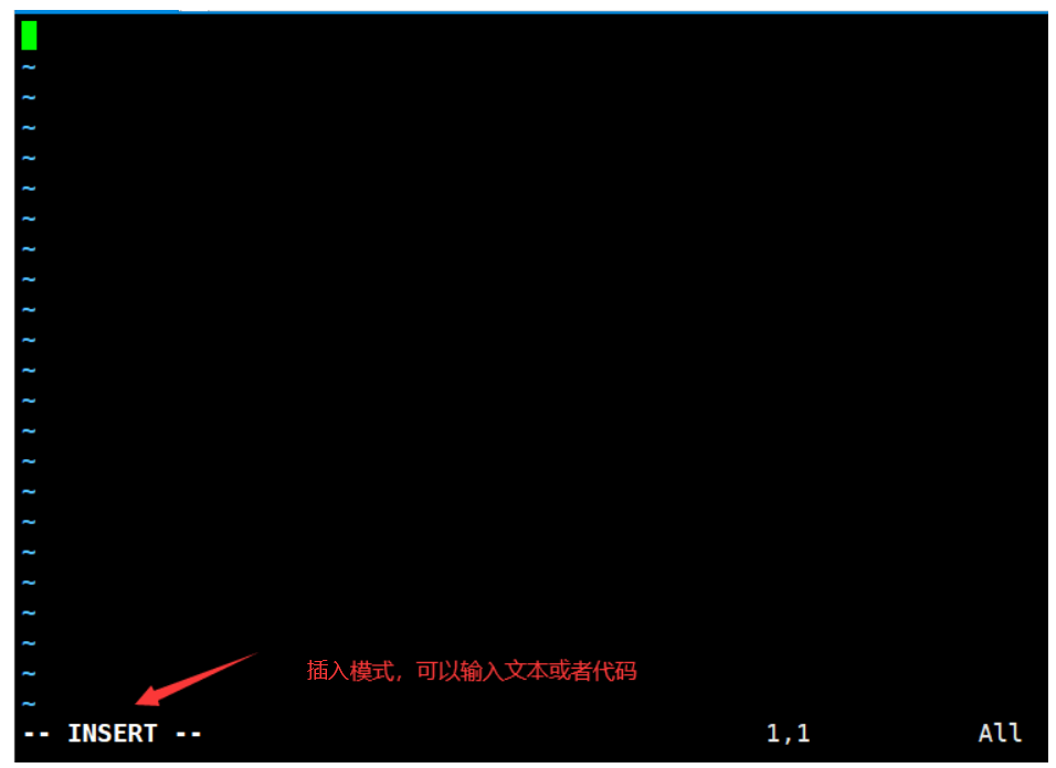若想要编辑文本:启动Vim,进入了命令模式,按下i,切换到输入模式。