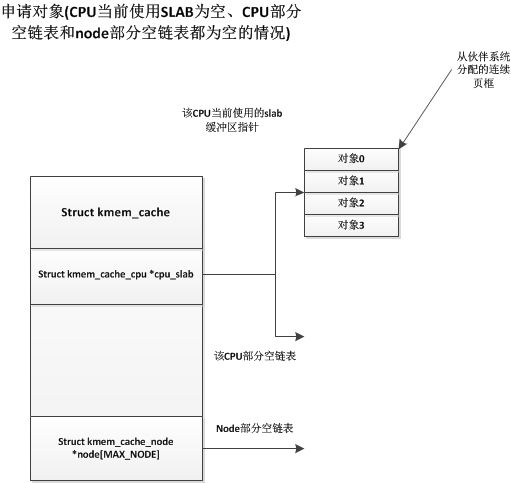 这时候当前CPU获得了一个空闲slab缓冲区,并将其中的一个空闲对象分配出去,而下次申请对象时也会从该slab缓冲区中获取对象,直到此缓冲区中对象用完为止。