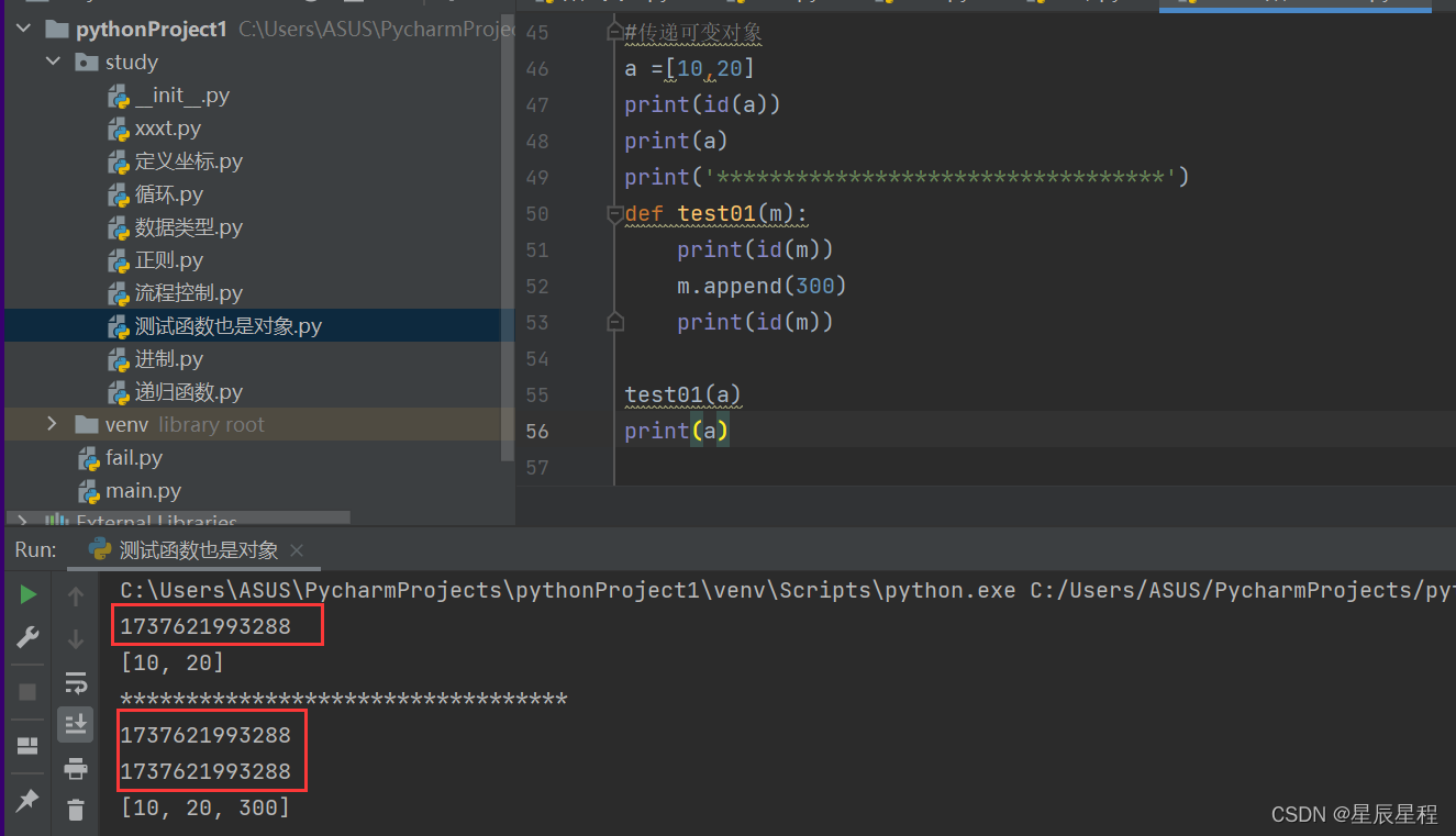 二、传递参数是可变对象(例如∶列表、字典、自定义的其他可变对象等),实际传递的还是对象的引用。在函教体中不创建新的对象拷贝,而是可以直接修改所传递的对象。