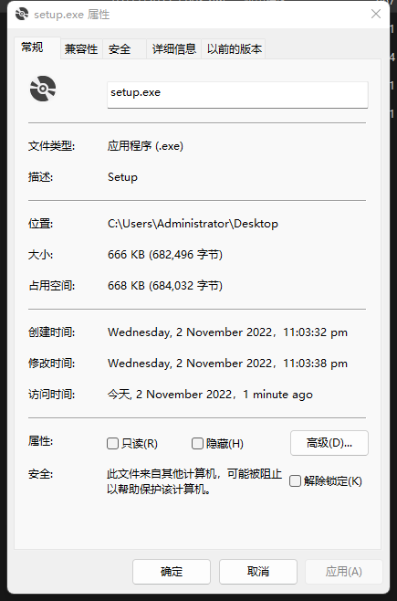 如上图,显示了我们创建安装包配置的软件安装包名称、版本号、发布者、需要的.NET运行时版本等,点击【安装】按钮,会下载一个setup.exe安装文件,这个文件很小,666KB,好吉利的数字: