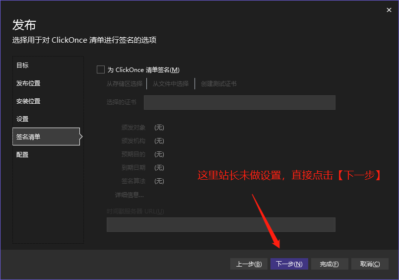 更多请访问微软文档:https://learn.microsoft.com/zh-cn/visualstudio/deployment/clickonce-security-and-deployment?view=vs-2022