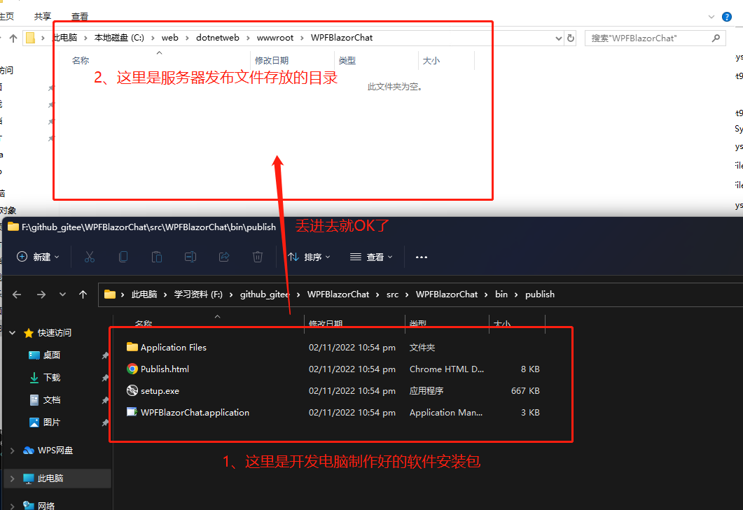 记住上面的线上地址,使用前几天介绍的WPFBlazorChat做为示例做安装包,仓库地址是:https://github.com/dotnet9/WPFBlazorChat,所以上面创建的目录与项目名同名:WPFBlazorChat