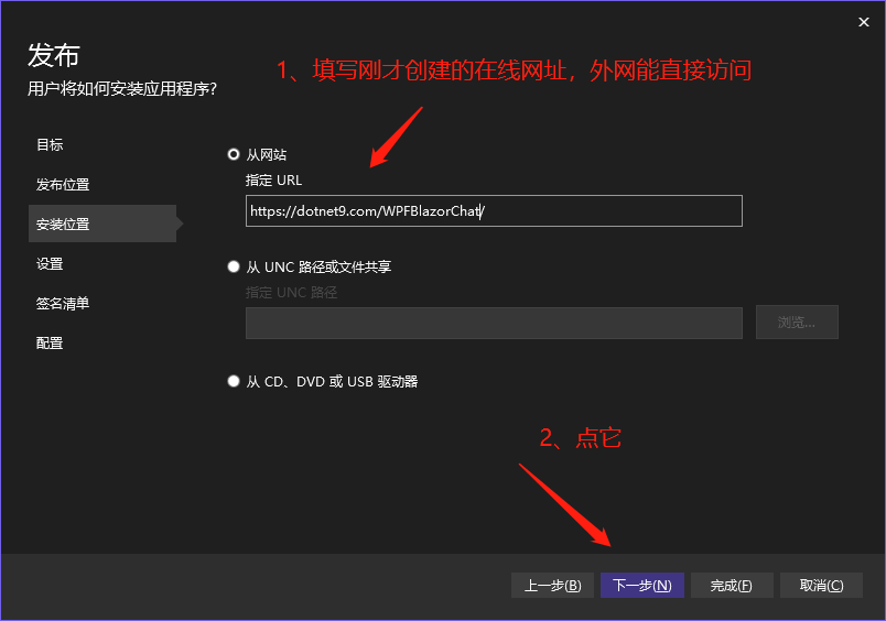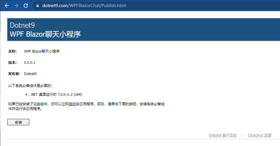 地址是:https://dotnet9.com/WPFBlazorChat/Publish.html