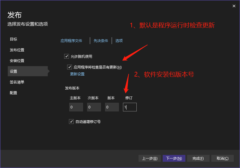如上图,如果勾选【自动递增修订号】,那么每次点击发布,修订号会递增(感觉说的是废话,主要是方便版本号管理)。