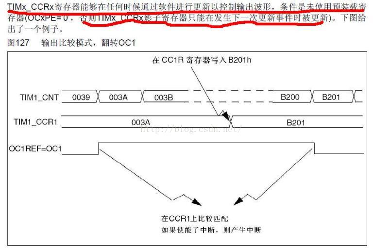 就是为了后面在中断服务子程序可以修改TIMx_CCR实时起作用
