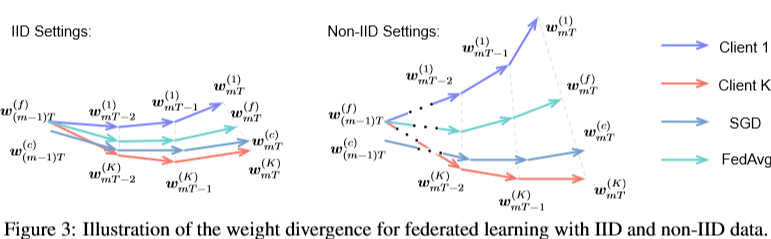 之间的差异可以通过图3中的插图来理解。当数据为IID时,对于每个客户端
