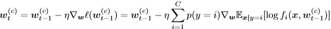 我们正式定义了联邦学习的问题,并分析了weight divergence的根源。我们正式定义了联邦学习的问题,并分析了weight divergence的根源。 我们考虑在紧凑空间X和标签空间Y = |C|上定义的C类分类问题,其中|C| = {1,...,C}。数据点{x,y}遵循分布p在X×Y上分布。函数f:X→S映射到概率单纯形S,其中S = {z | 1,zi≥0,∀ i∈|C|},其中fi表示第i类的概率。在假设类上参数化神经网络的权重。 我们用广泛使用的交叉熵损失定义损失: