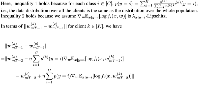 当数据为non-IID时,对每个客户端k,由于数据间分布的距离,