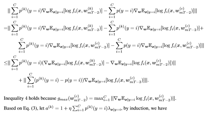 给定K个客户端,每个客户端有n(k)个i.i.d样本,遵循客户端k∈[K]的分布p(k)。 如果对于每个类别i∈|C|, 是