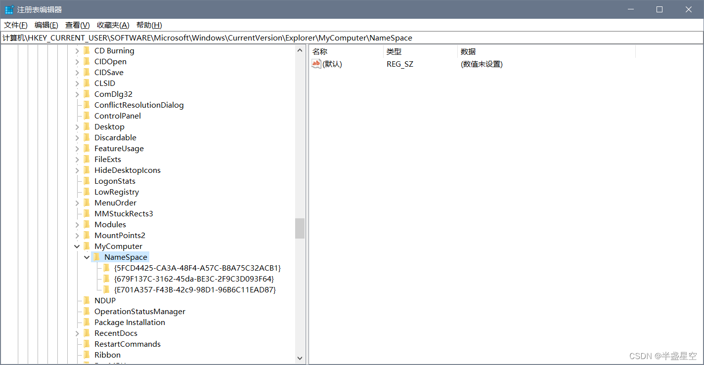 \HKEY_CURRENT_USER\SOFTWARE\Microsoft\Windows\CurrentVersion\Explorer\MyComputer\NameSpace\