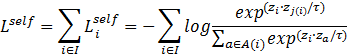 作者把contrastive learning学习问题(也可以理解为metric learning问题)比作一个在字典中的数据查找问题。以人脸识别问题为例,首先要准备人脸图像底库,把人脸图像向量化embedding得到底库中人脸图像的embedding集合(字典),人脸识别的过程就是给定一张新的人脸图片,用这张新图片在embedding集合中进行匹配查找。自监督的Contrastive loss的计算公式如下: