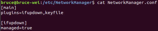 /etc/NetworkManger/目录下的NetworkManager.conf就是该软件的配置文件,managed=true表示启用该GUI工具。配置完成后记得使用sudo service NetworkManager restart重启软件。