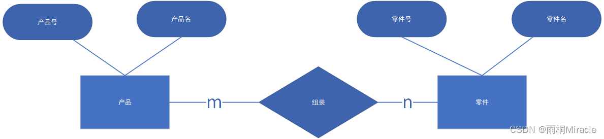 6.某工厂生产多种产品,每种产品由不同的零件组装而成,有的零件可用在不同的产品上。产品有产品号和产品名两个属性,零件有零件号和零件名两个属性。根据语义设计E-R模型,并将E-R模型转换成关系模式,要求关系模式主码加下划线表示。