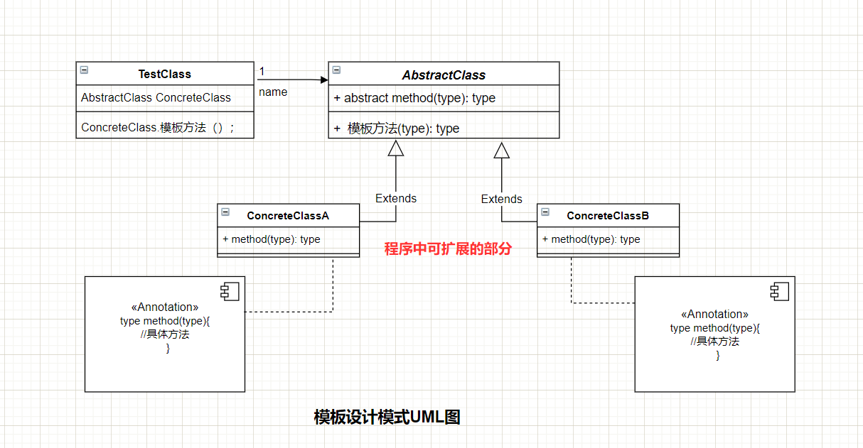 抽象类(AbstractClass):实现了模板方法,定义了算法的骨架。