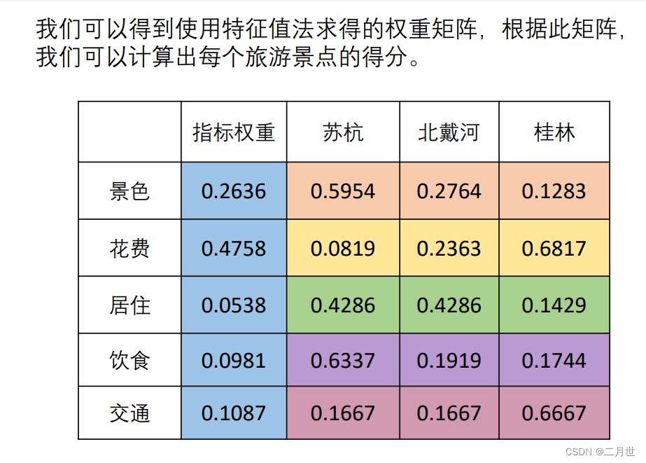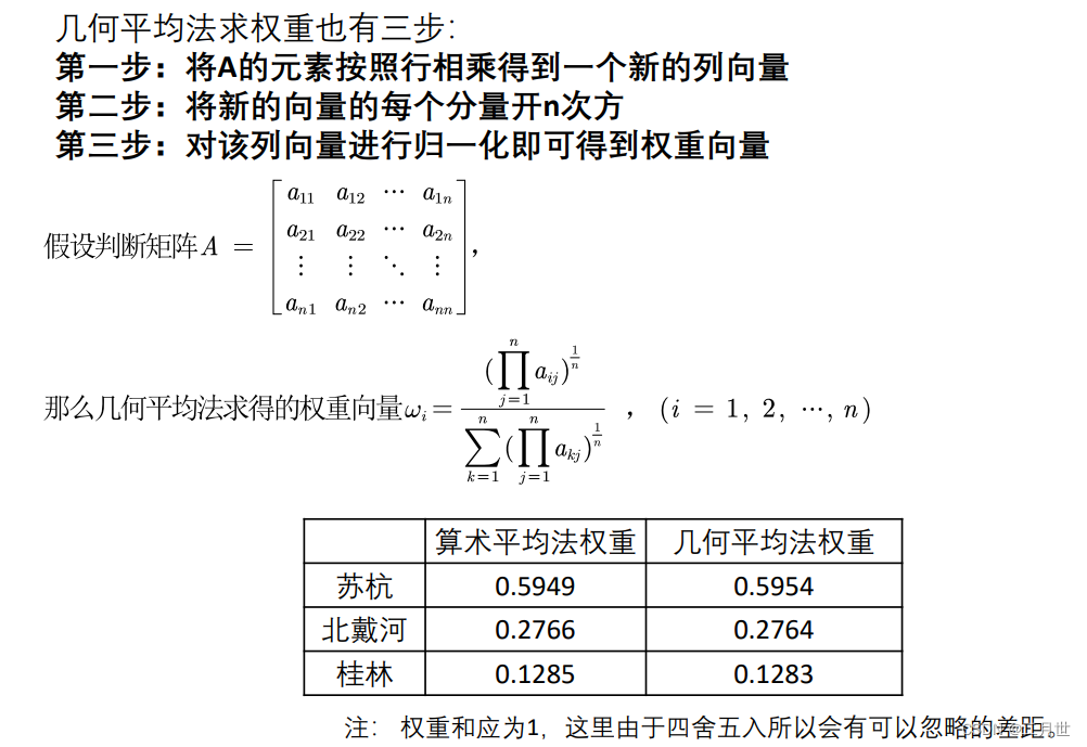 % 这里对每个元素进行乘方操作,因此要加.号哦。 ^符号表示乘方哦 这里是开n次方,所以我们等价求1/n次方% 第三步:对该列向量进行归一化即可得到权重向量