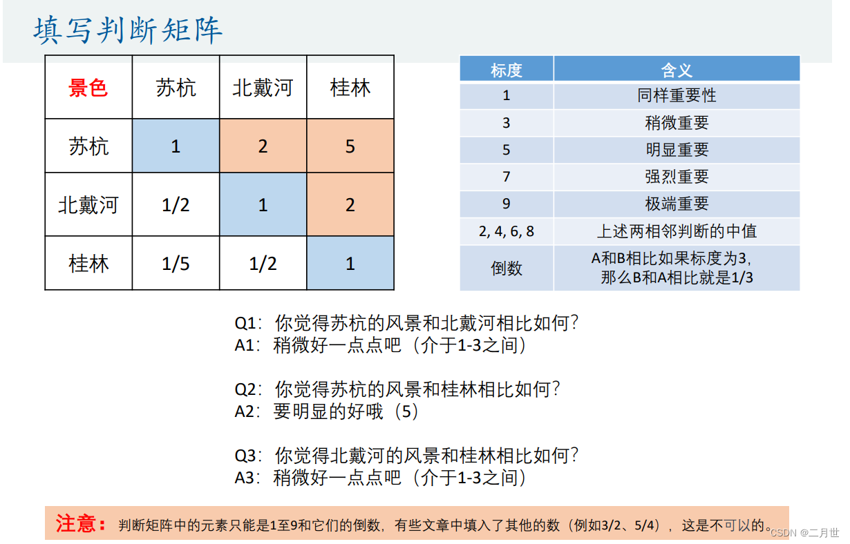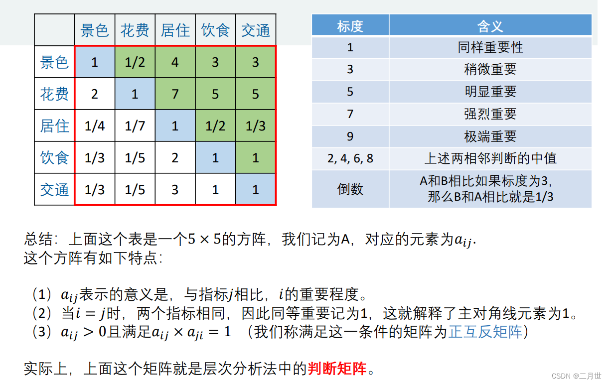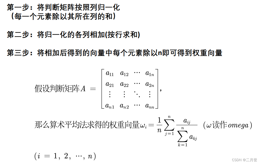 % 因为我们的判断矩阵A是一个方阵,所以这里的r和c相同,我们可以就用同一个字母n表示