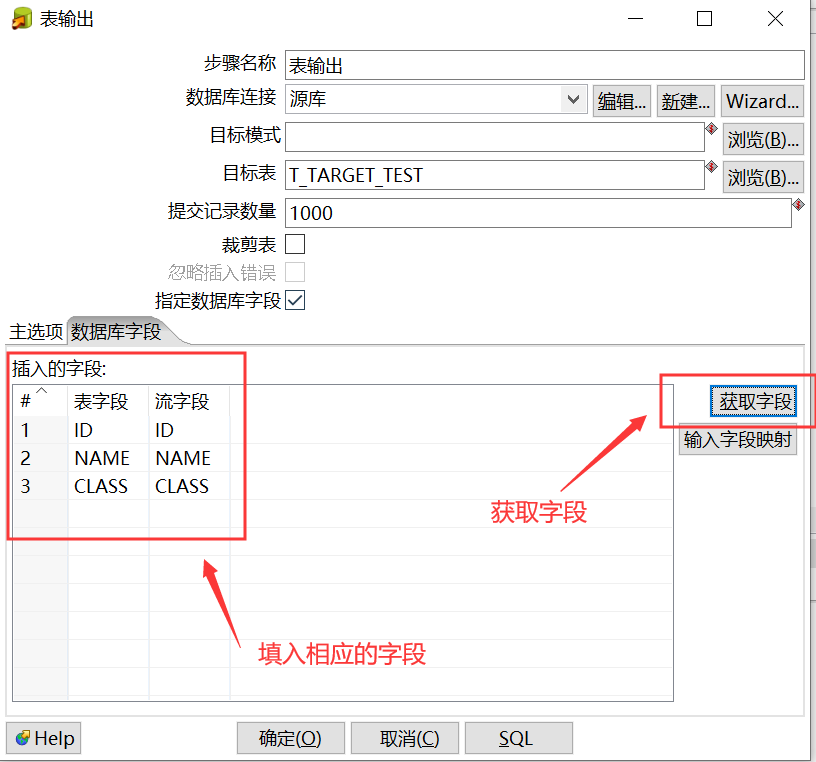 4、最后连接表输出,选择数据库字段后(必须和目标表的表结构一致),点击确认
