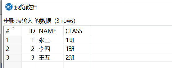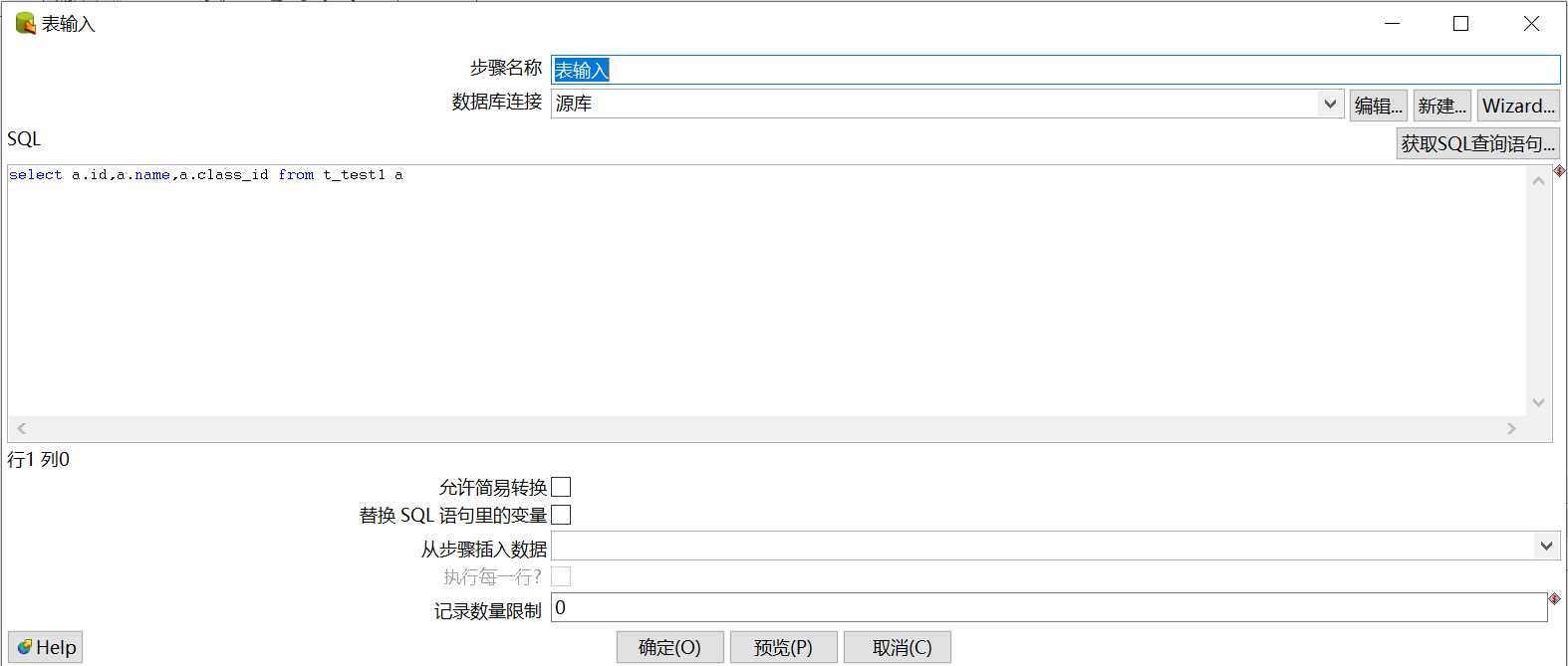 由上面流程图可以看到,start分了两个分支,一个是class表,一个是student表,下面我们来一一点开每个转换看下。