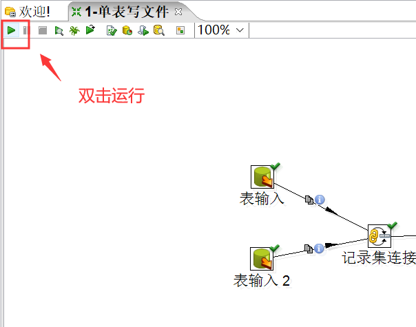 方式二:如图所示,需要创建表输入1(学生),表输入2(班级),记录集连接(连接学生和班级表),表输出(写入目标表)