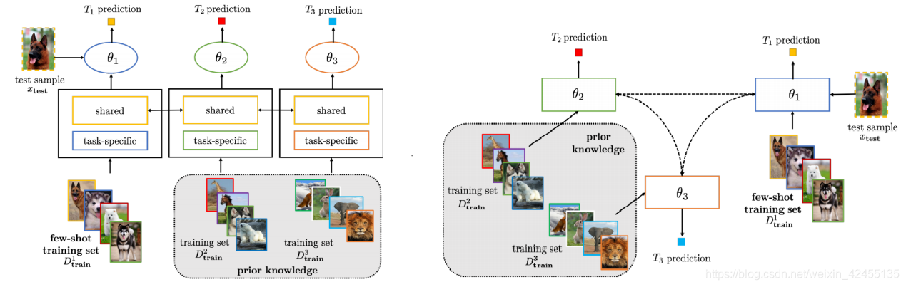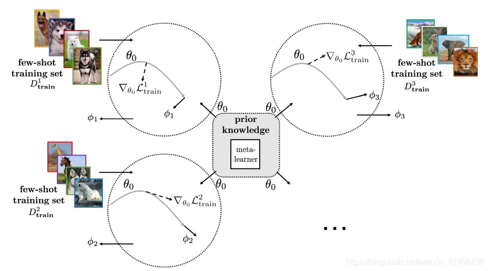 2.改善元学习参数。元学习(meta-learning)是当下很火的一个研究方向,它的思想是学习如何学习。它的结构一般是由一个底层模型和一个顶层模型组成,底层模型是model的主体,顶层模型是meta-learner。更新参数时,它除了要更新底层model,还要更新meta参数。改善策略大致有三类:1)结合不同特定任务模型参数来对新任务的参数进行初始化;2)对模型不确定性建模,以备后续提升;3)改进参数调整流程。