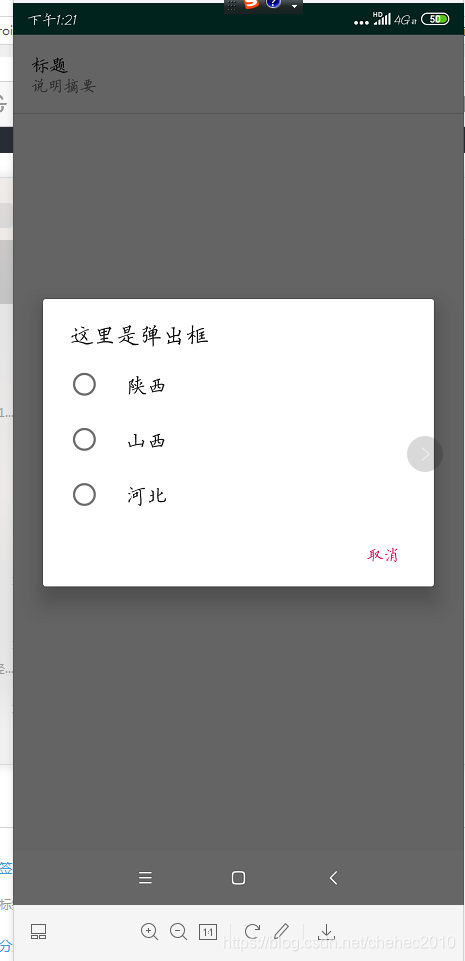 <PreferenceScreenxmlns:android="http://schemas.android.com/apk/res/android"android:key="screen_list"android:title="标题"android:summary="说明摘要"><ListPreferenceandroid:key="myListPreference"android:title="标题"android:summary="说明摘要"android:entries="@array/list_entries"android:entryValues="@array/list_entries_value"android:dialogTitle="这里是弹出框"android:defaultValue="@string/deflault_list_entries_value"></ListPreference></PreferenceScreen>