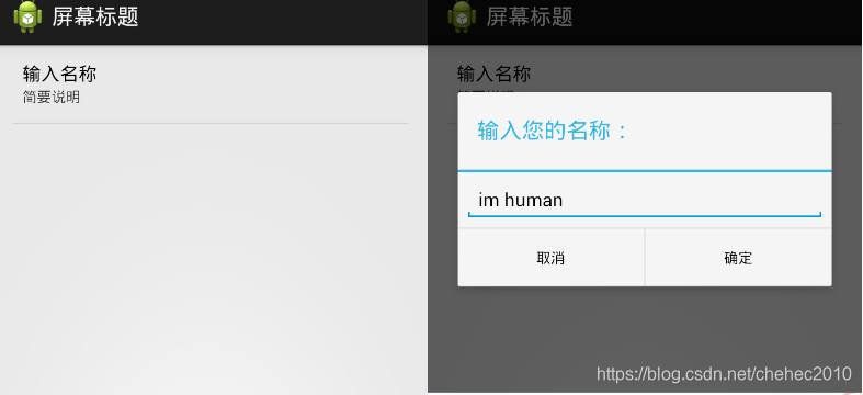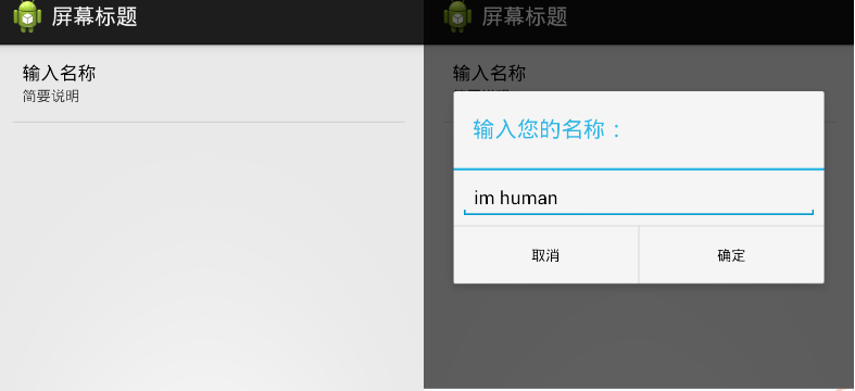 <PreferenceScreen xmlns:android="http://schemas.android.com/apk/res/android" android:key="edittext_screen" android:summary="屏幕简要说明" android:title="屏幕标题" > <EditTextPreference android:dialogTitle="输入您的名称:" android:key="editWord" android:defaultValue="im human" android:summary="简要说明" android:title="输入名称" > </EditTextPreference> </PreferenceScreen>