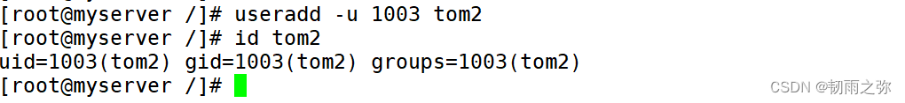 如:创建一个用户tom2指定它的uid为1003