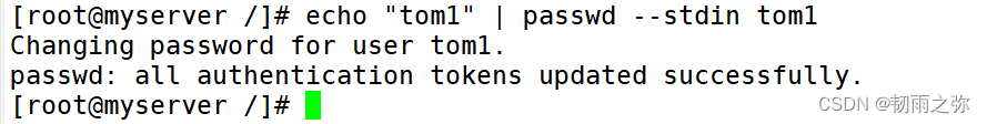 如:通过标准输入的方式给tom1用户重新设置密码,密码为:tom1