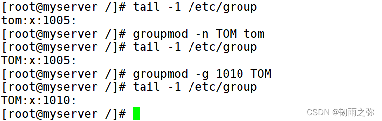 如:修改tom组的组名为TOM,并修改它的gid为1010: