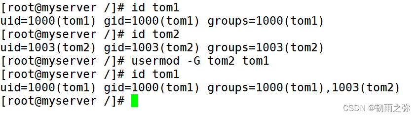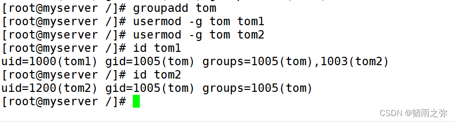 如:创建一个组tom,将tom1,tom2加入到该组中: