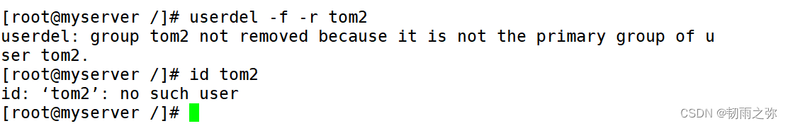 虽然tom2的gid是其他的用户的组的id,但是使用userdel 任然可以删除它。