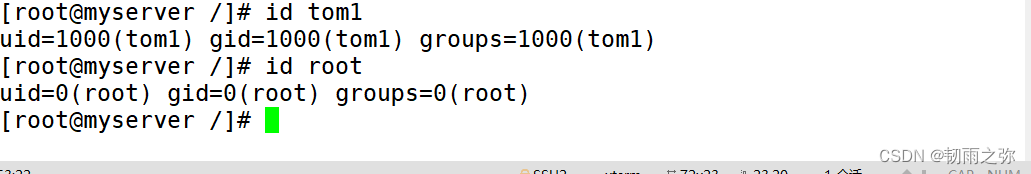 1:id 用于显示真实有效的uid和gid: