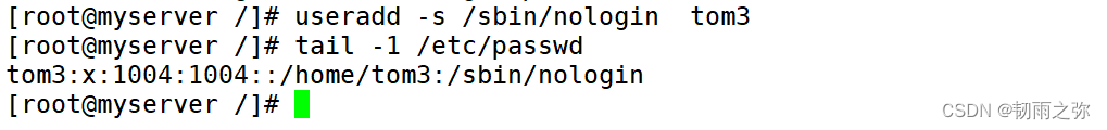 创建一个用户tom3指定它的解释器为:/sbin/nologin 即不允许登录系统