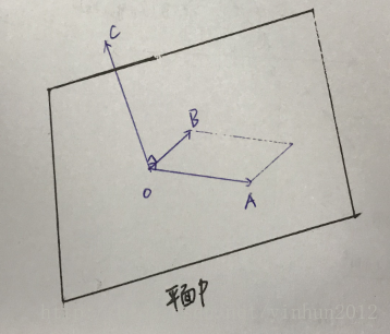 接下来就要思考怎么计算OC这个向量了,为了直观些,我们继续看下图: