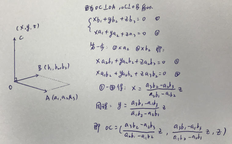由①我们推算出OC的Z代数坐标分量,那么此时问题就变换成求Z分量了,如下图: