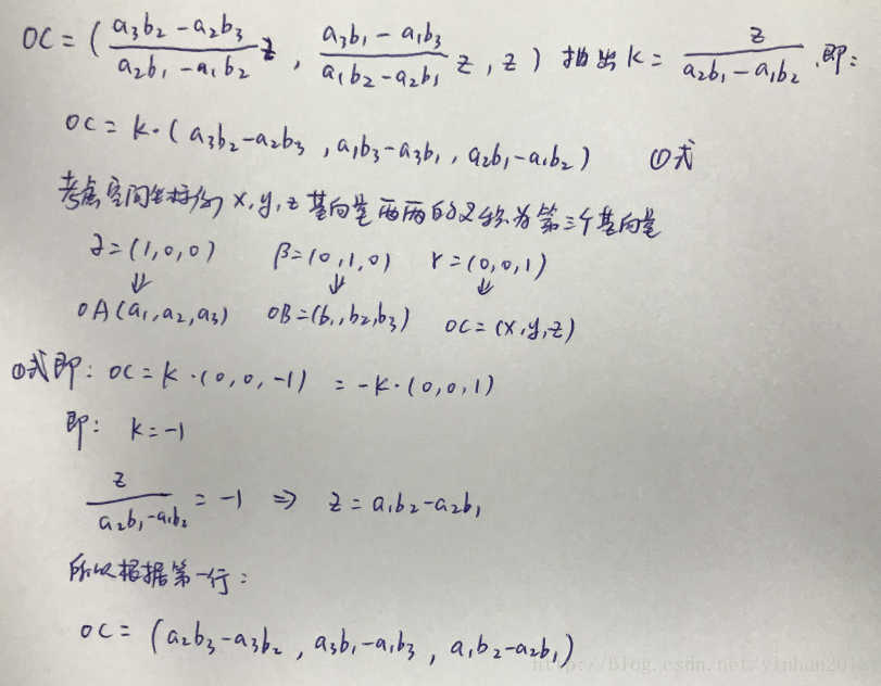 这里我们用xyz基坐标两两的叉积等第三轴的基坐标,这种特殊形式推出OC中z值。